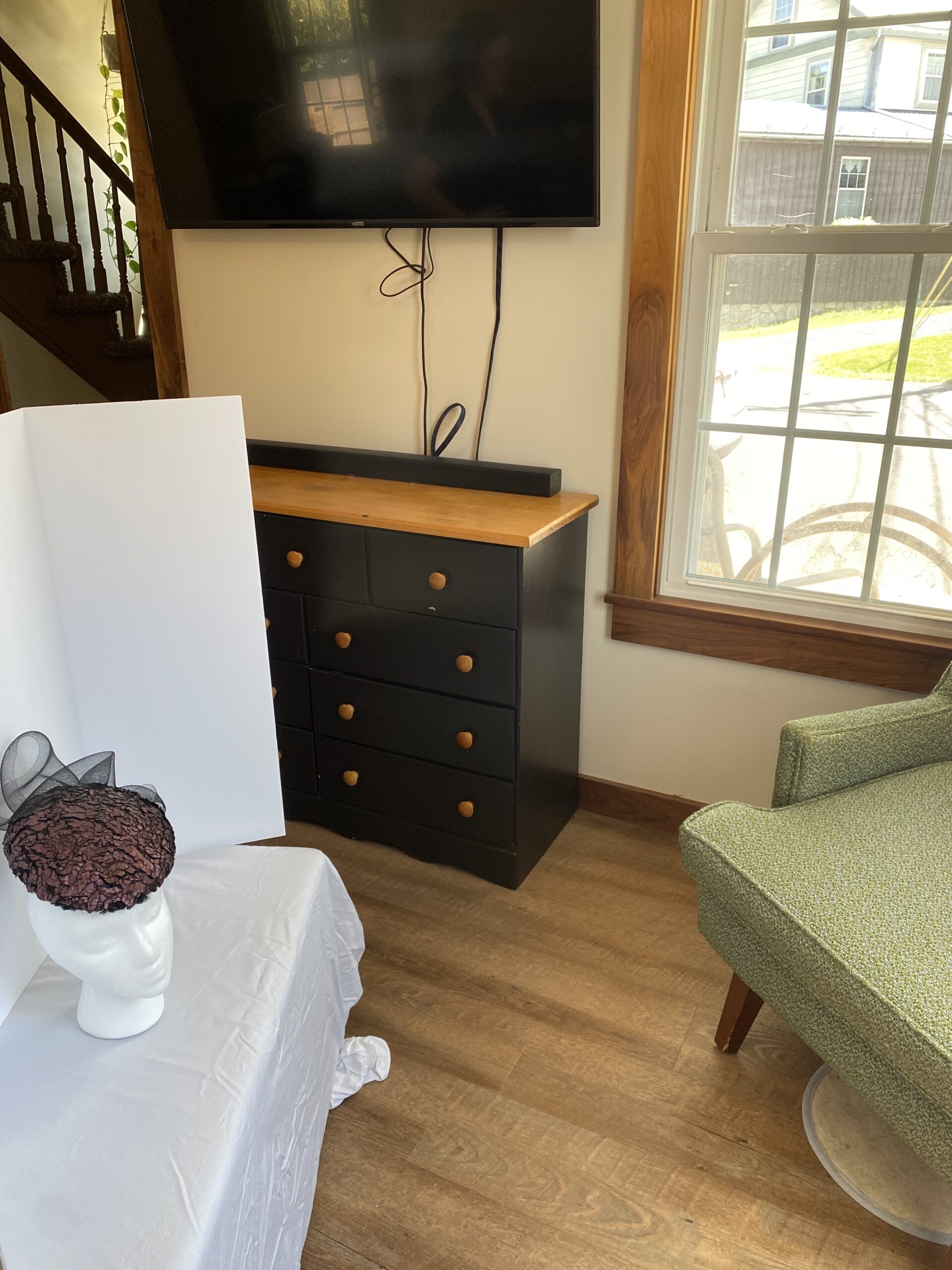Position hat beside window, take picture with window light in front of or beside hat, not behind.
