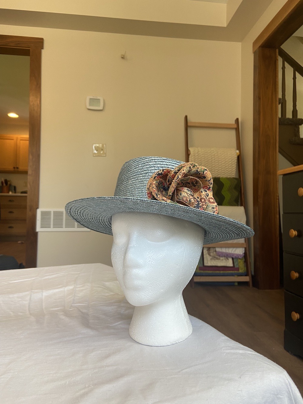 One of the most important aspects of photograph composition is the position of your camera. While other aspects like crop and coloration can be altered in post-processing, the perspective from which your camera captures a subject is almost impossible to change! By positioning yourself on the same level as the subject, you are able to capture the best-possible representation of your hat as you would see it in person. Photographing at a low position will capture more of the bottom of your work and make it appear more prominent than in real life. The same can be said for the top of the hat if you come from a high angle with your camera.