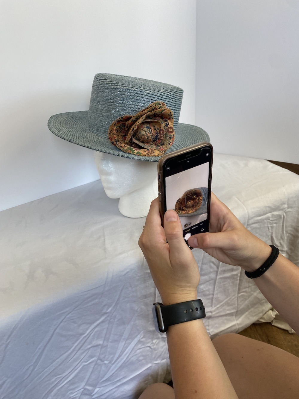 Have a plain background, preferably white or something that won’t clash or distract from the hat. Try not to have other distracting objects in the frame.