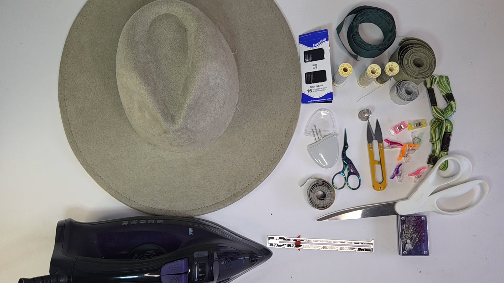 In this tutorial, Martine from Martine Henry Millinery encourages you to elevate your hatband game by exploring two different Petersham techniques—layering and embroidery.