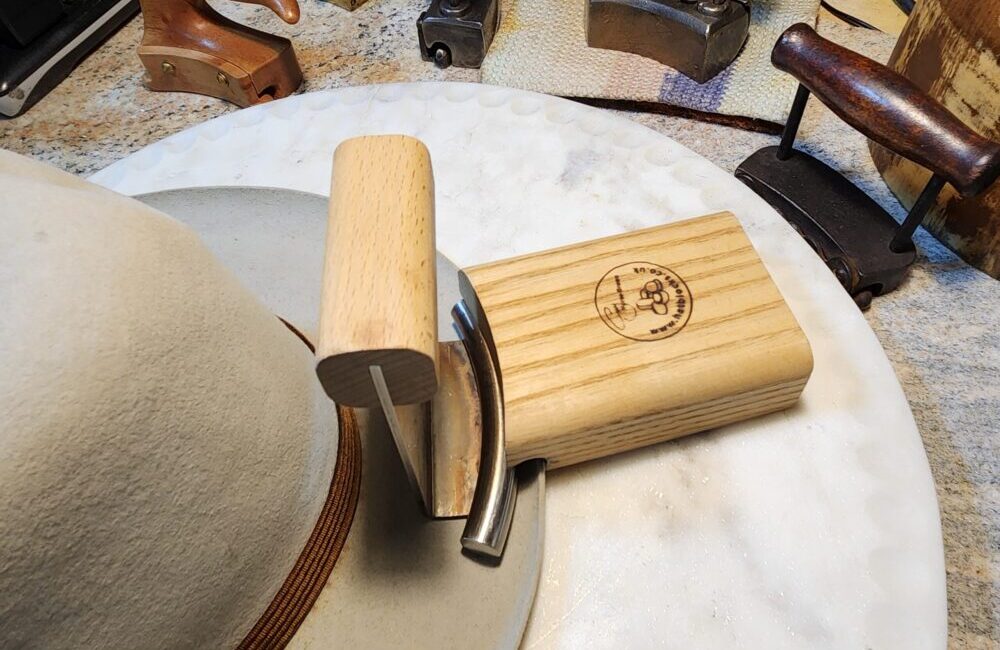 This method can be used on most hat blocks, although standard wooden shapes without intricate details will work best. You can use new or recycled felt, or even repurpose an old felt hat. The only requirement is that the felt is stiffened and dried before use. If you are not sure how to stiffen felt, take a look at Elena’s tutorial on the subject.