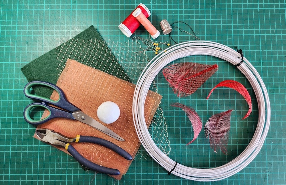 • 15 x 15 cm piece fabric of your choice for the flower centre (Note: Size should be adjusted according to the size of your polystyrene ball.)