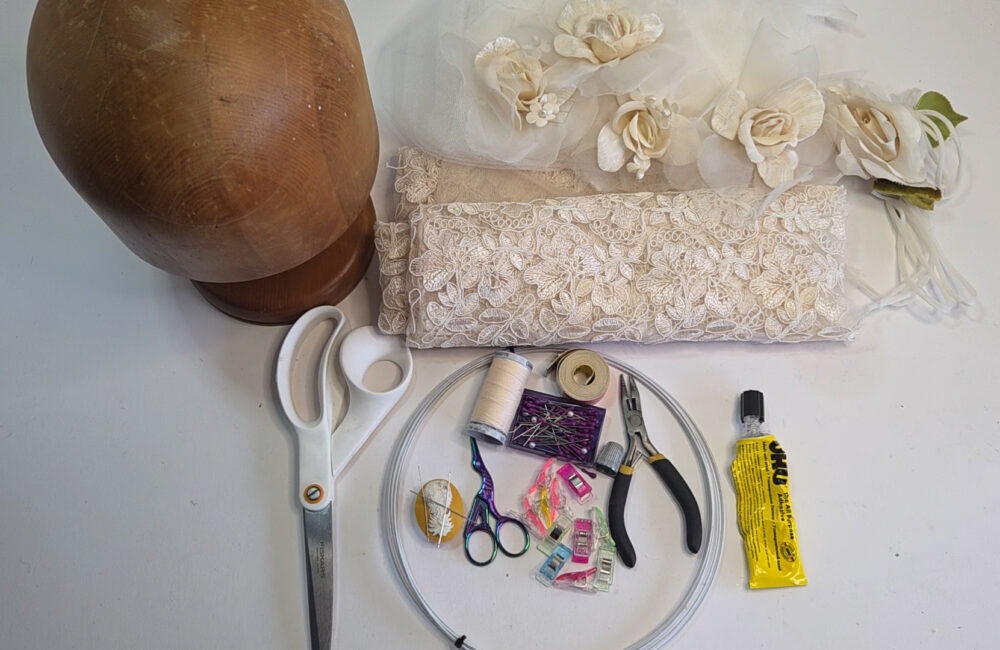 In this tutorial, Martine from Martine Henry Millinery demonstrates how to make a lace covered wire frame headpiece with a vintage feel. This design was inspired by Grace Kelly’s 1956 wedding headpiece.